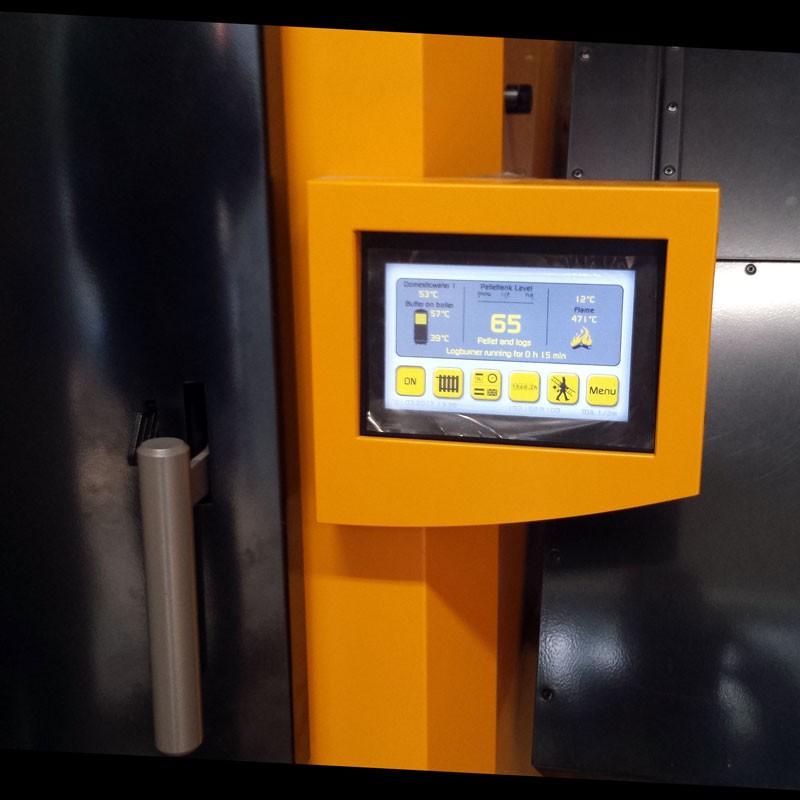 | Sistema de regulació | thermocontrol TC3: 2 circuïts de calefacció, 1 circuït d'aigua calenta sanitari, regulació de la caldera i depòsit d'inèrcia, sistema d'alimentació automàtica; control de vàlvula elèctrica de càrrega estratificada |