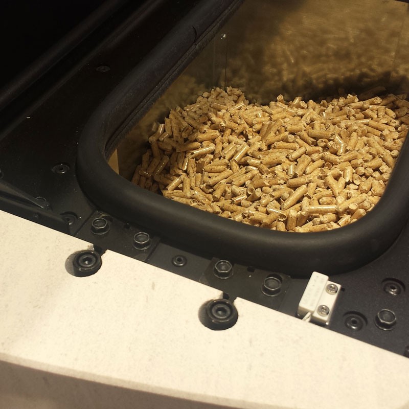 Aqueta estufa possiblement té un dels més grans dipòsits de pellets del mercat amb una capacitat total de 30 kgs!! Aquesta gran sitja de pellets proporciona confort sense les molestes recàrregues en espais curts de temps.