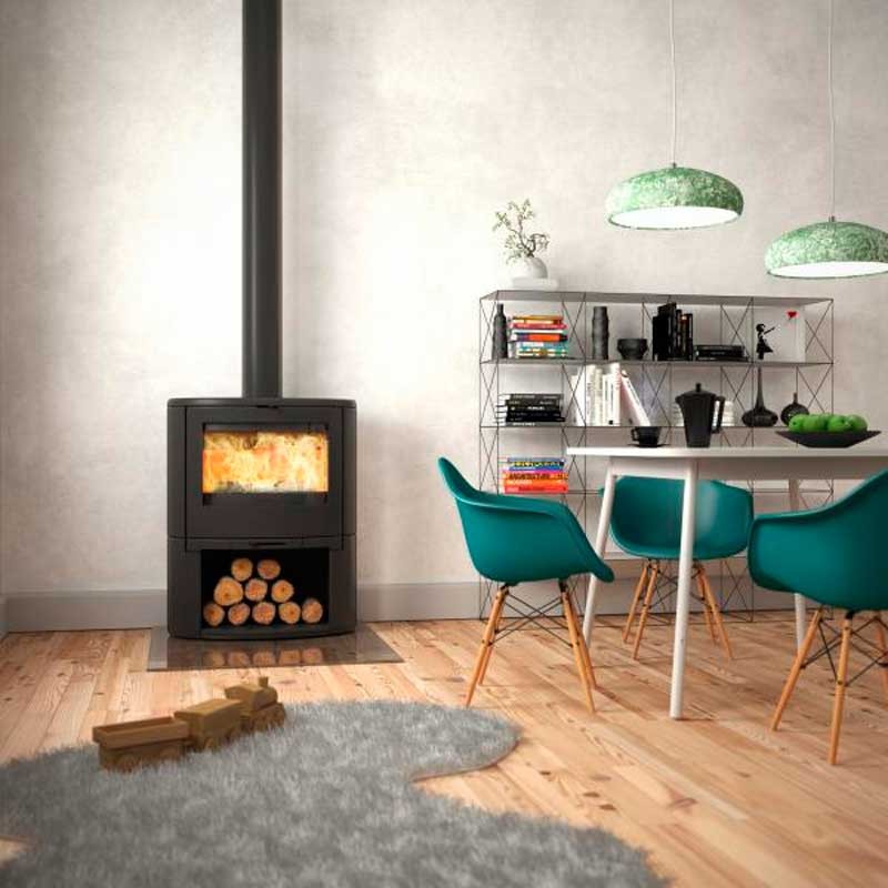 Estufa de llenya de fundició de la marca Dovre. La tecnologia de Dovre és garantia d’una combustió ecològica així com d’un elevat rendiment. Estufa equipada amb el Sistema de Airwash que manté el vidre net.