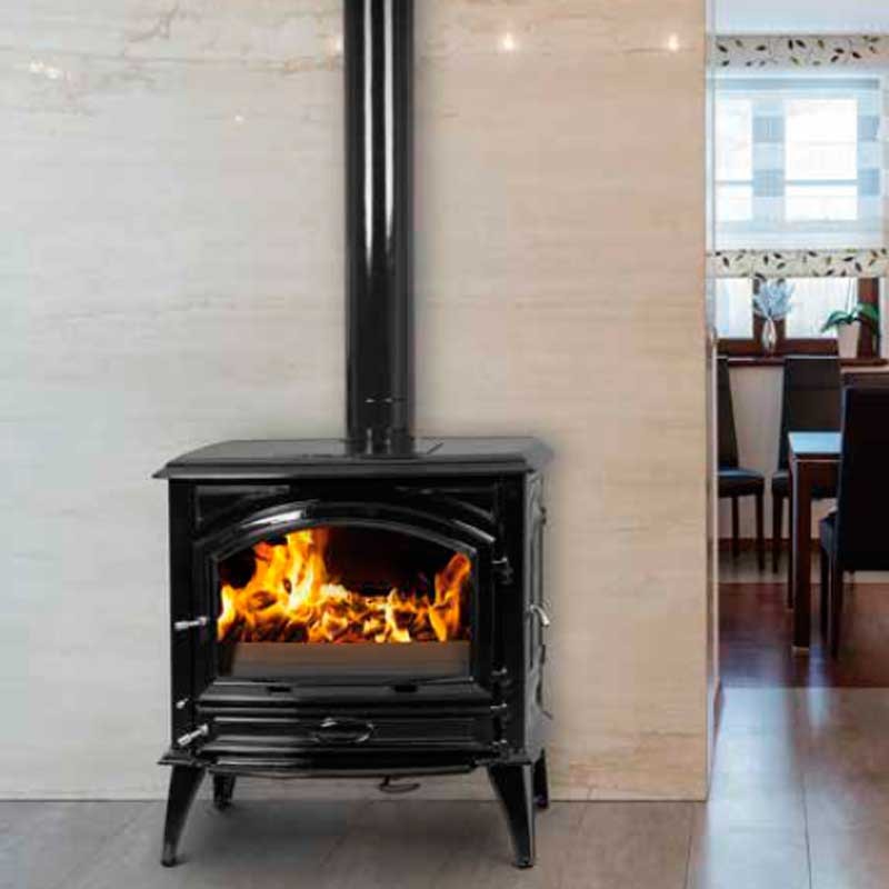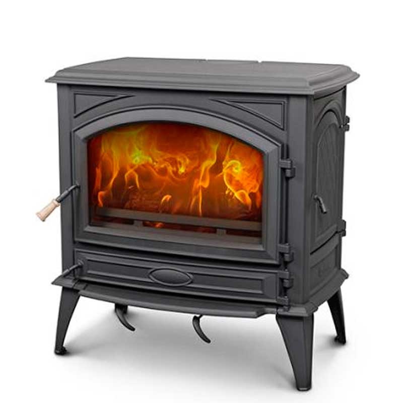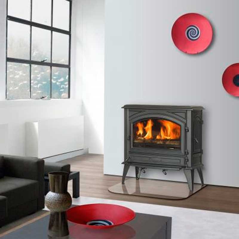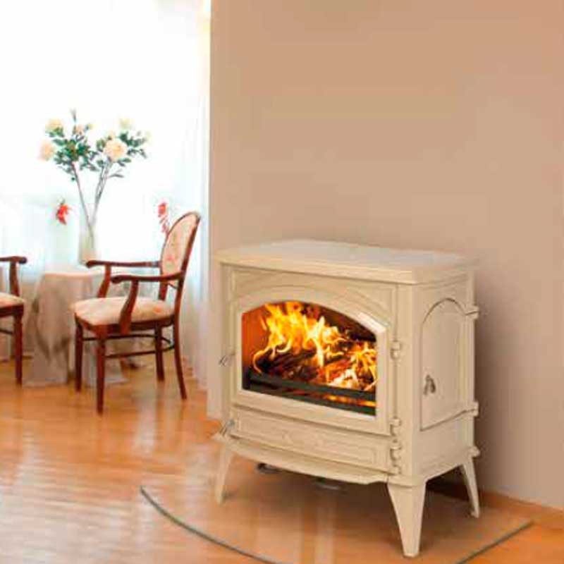 Estufa de llenya de fundició rústica de la marca Dovre. La tecnologia de Dovre és garantia d’una combustió ecològica així com d’un elevat rendiment. Estufa equipada amb el Sistema de Airwash que manté el vidre net.