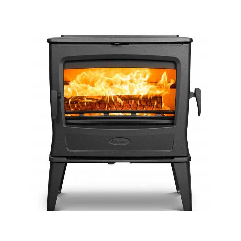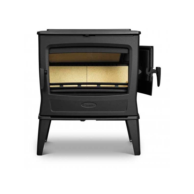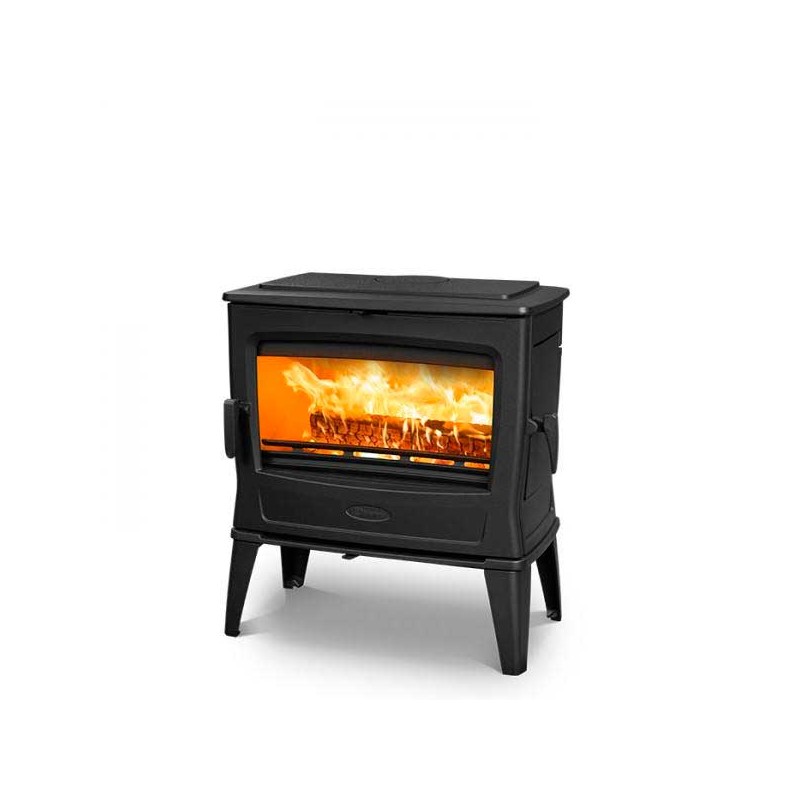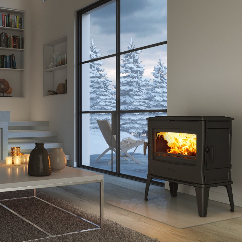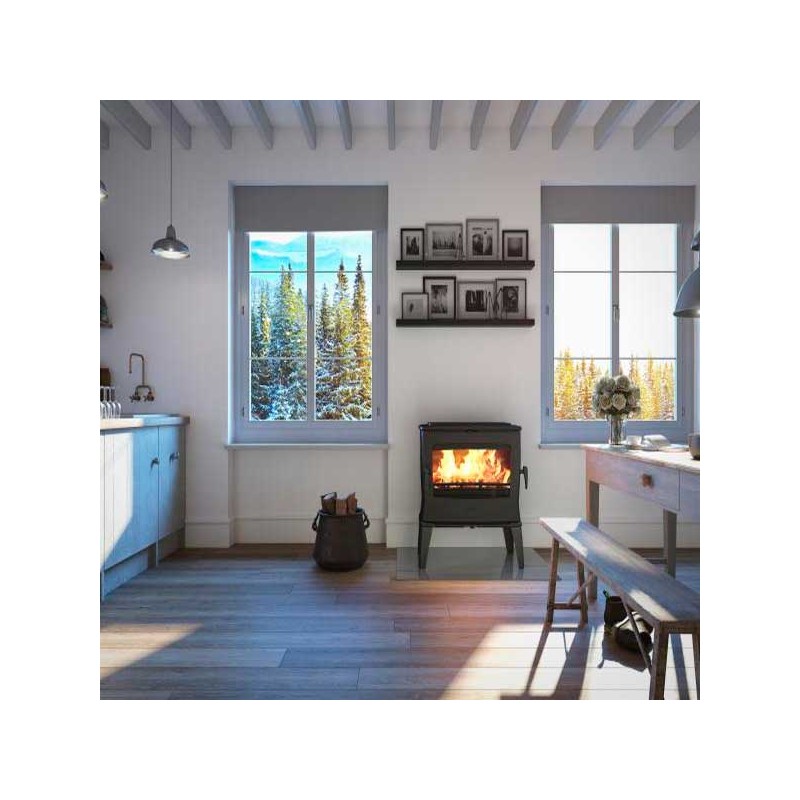 Estufa de llenya de fundició de la marca Dovre. La tecnologia de Dovre és garantia d’una combustió ecològica així com d’un elevat rendiment. Estufa equipada amb el Sistema de Airwash que manté el vidre net.