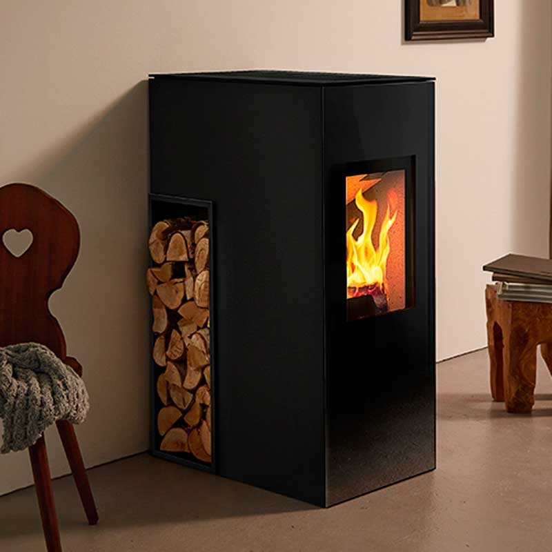 La COOPER té un vidre central molt gran que et deixa disfrutar de la elegant flama de l'estufa Rika des de diferents espais i ubicacions dins la mateixa sala. També dispone d'un llenyer a la part de darrera que fa desviar totes les mirades.