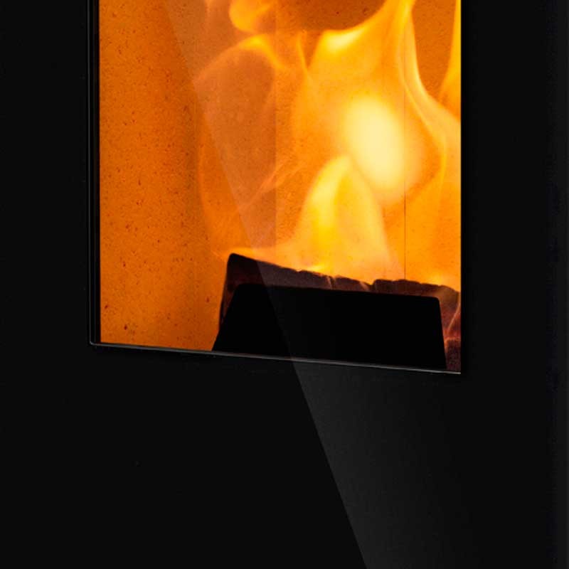 El vidre patentat de RIKA, es manté net i clar, proporcionant una visió nítida sobre les flames, gràcies a l'òptima circulació de l'aire. També disposa de la toma d'aire indenpendent exterior, ideal per espais ben aïllats (una estufa necessita aproximadament 20 m³ d'aire fresc per hora).