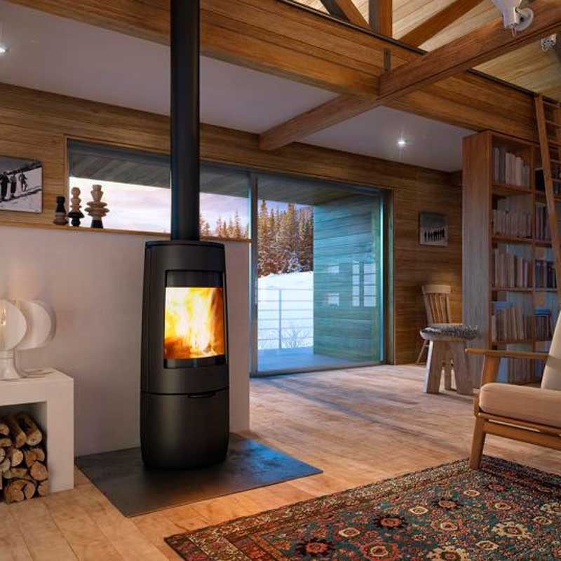Estufa de llenya de fundició de la marca Dovre. La tecnologia de Dovre és garantia d’una combustió ecològica així com d’un elevat rendiment. Estufa equipada amb el Sistema de Airwash que manté el vidre net.