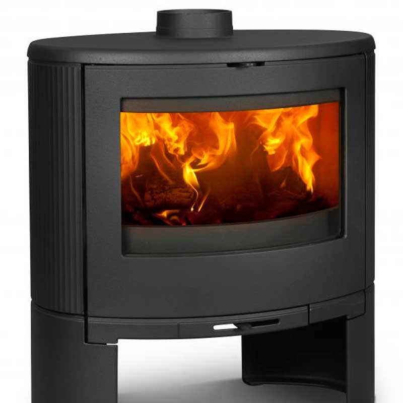 Estufa de llenya de fundició de la marca Dovre. La tecnologia de Dovre és garantia d’una combustió ecològica així com d’un elevat rendiment. Estufa equipada amb el Sistema de Airwash que manté el vidre net.