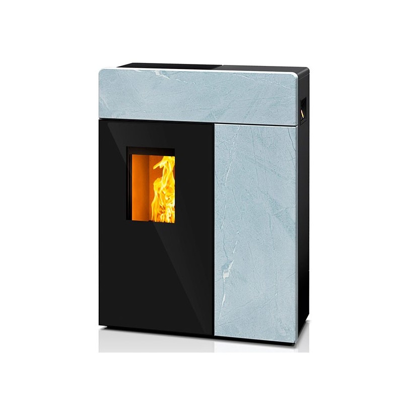 També destacar els grans panells de pedra natural que s'integren al frontal de la Domo. Com a novetat aquesta temporada també están disponibles els revestiments frontals en vidre negre, decoració blanca i decoració de fusta. L'opció del revestiment de pedra aporta dues funcions, una d'acumuladors tèrmics amb els 60 kg de pedra i l'altra és la gran bellesa al poder disfrutar de l'amplia flama entre els colors de les pedres naturals.