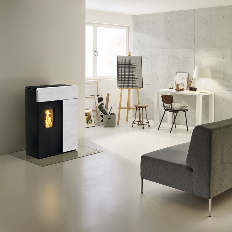 Aquesta estufa està disenyada per funcionar per convecció natural i poder suministrar la calor de la forma més silenciosa. Per si això fos poc, el model Domo inclou el nou sistema de suministrament de pellets que redueix al mínim els sons de funcionament i de la caiguda de pellets.