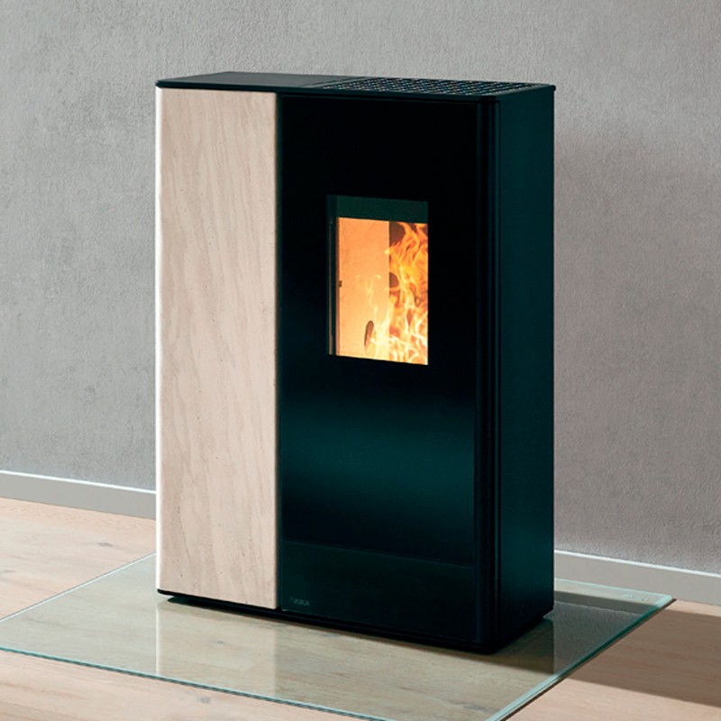 Estufa de pellets de la marca RIKA model SONO convenç per les seves reduïdes dimensions i per l’exquisit disseny. Aquest model d’estructura compacta, incorpora totes les innovacions de RIKA i a més, com a funció addicional, pot controlar-se per veu amb el RIKA VOICE.