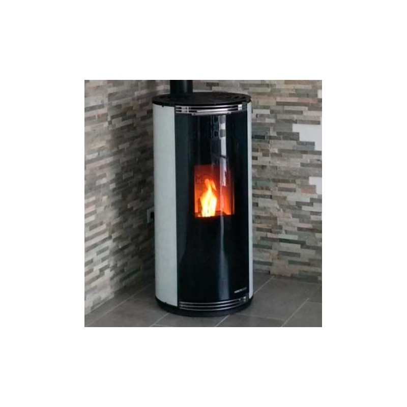 Estufa de pellet GLOBE GLASS RELAX de la marca MORETTI. En aquesta estufa hi ha la possibilitat de desactivar la ventilació forçada i per tant obtenir un resultat d'una estufa per convecció natural, molt silenciosa.