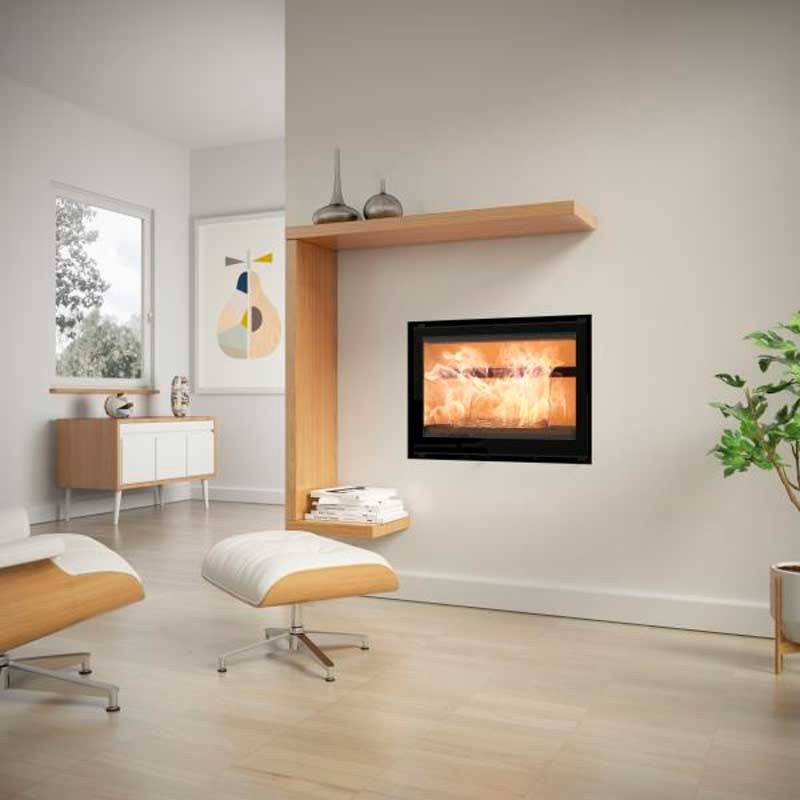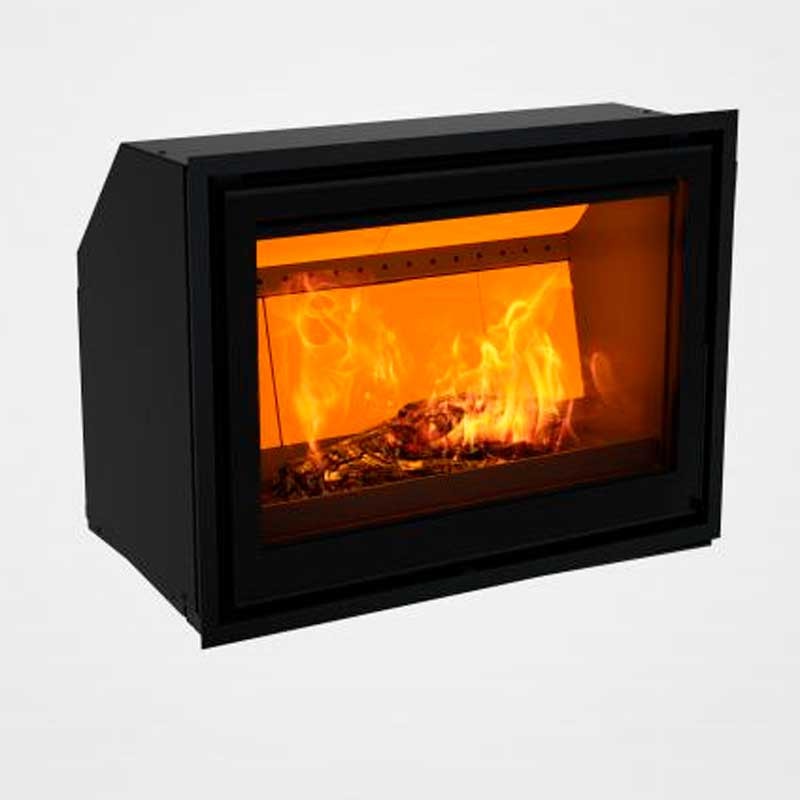 Insertable de llenya de la marca Dovre amb porta de vidre i 80 cm d'amplada. La tecnologia de Dovre és garantia d’una combustió ecològica així com d’un elevat rendiment. Llar de foc equipada amb el Sistema de Airwash que manté el vidre net.