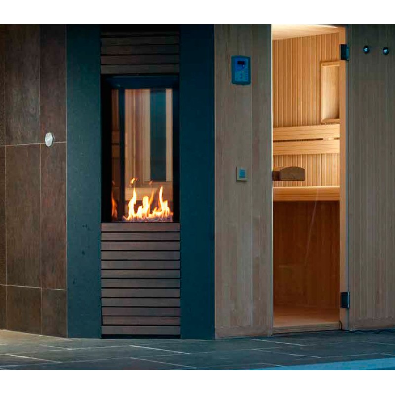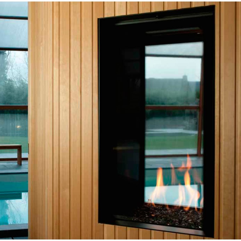 Llar de foc de gas túnel de dos cares vertical, model Luna 550 DV Diamond de la marca M-DESIGN. El disseny, l’elegància i la innovació de M-DESIGN és garantia de confort i bellesa de la flama així com d’un elevat rendiment.
