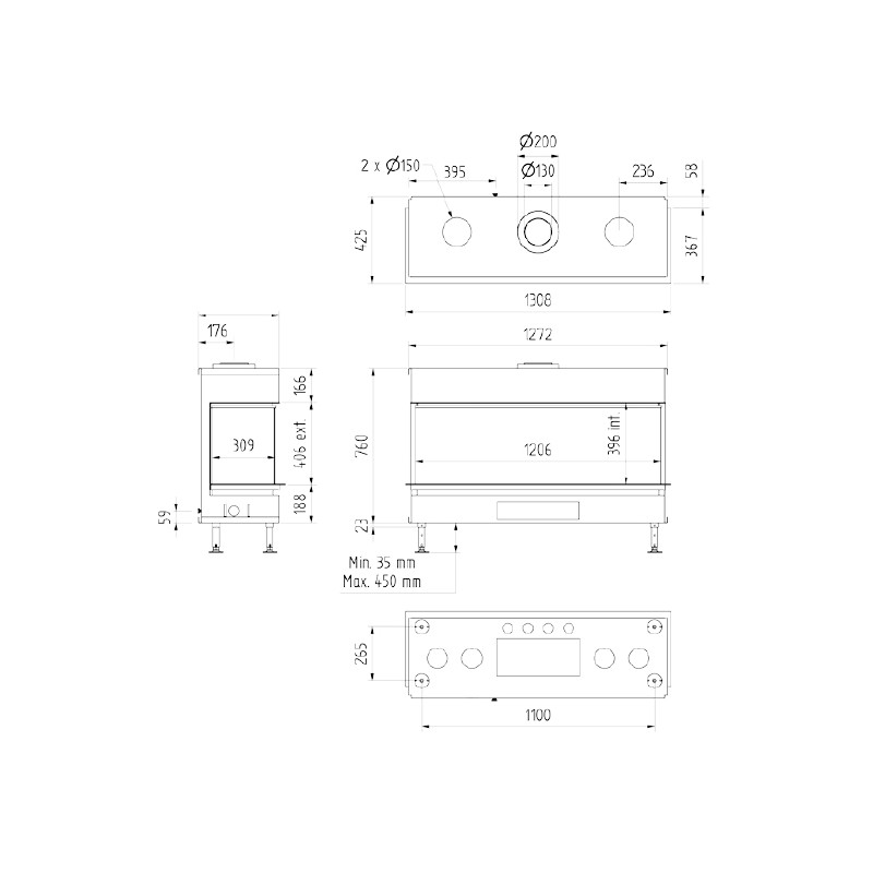 Llar de foc de gas de 3 cares, model Luna 1300 DC Diamond de la marca M-DESIGN. El disseny, l’elegància i la innovació de M-DESIGN és garantia de confort i bellesa de la flama així com d’un elevat rendiment.
