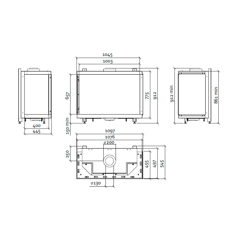 Dimensions visibles del vidre 657mm x 1003mm x 445mm.