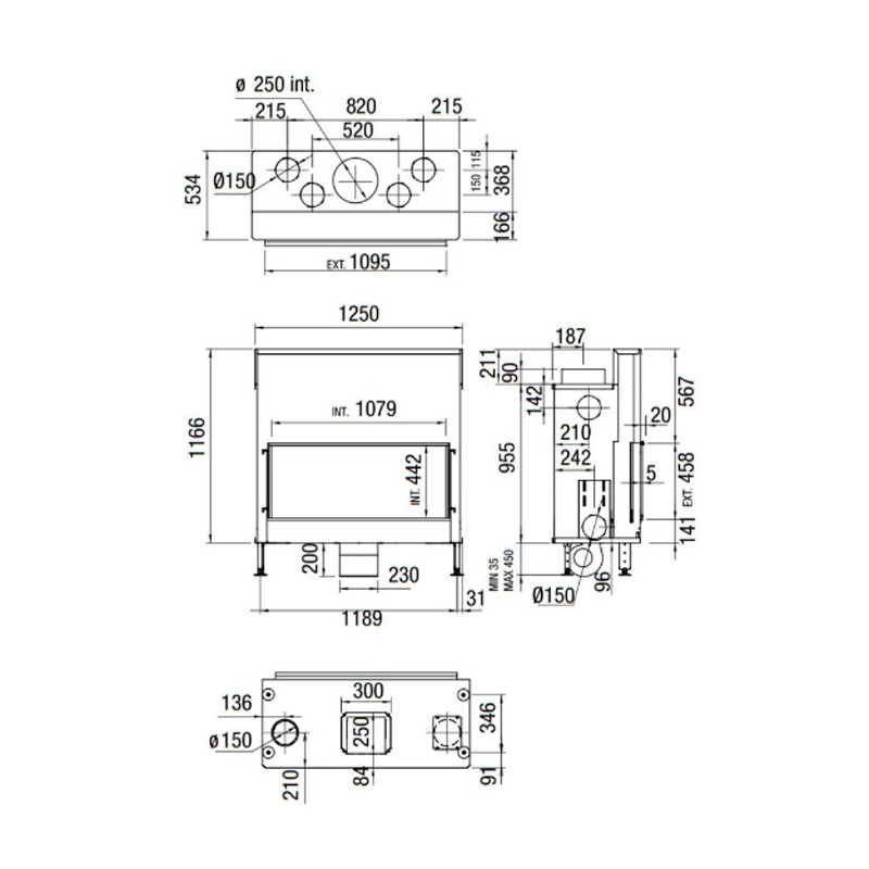Llar de foc de llenya amb porta de guillotina frontal horitzontal, model Luna 1150H Diamond de la marca M-DESIGN. El disseny, l’elegància i la innovació de M-DESIGN és garantia de confort i bellesa de la flama així com d’un elevat rendiment. Dimensions visibles 1079x442 mm.