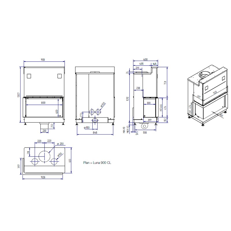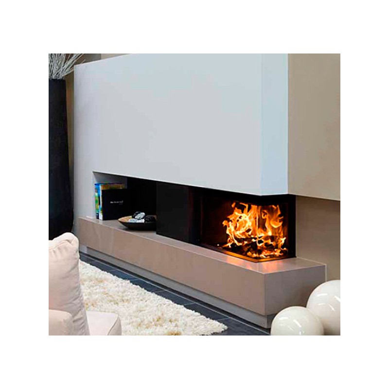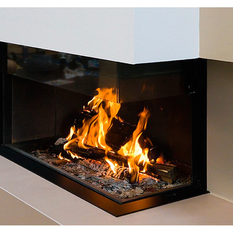 Llar de foc de llenya amb porta de guillotina de racó, model Luna 900CR Diamond de la marca M-DESIGN. El disseny, l’elegància i la innovació de M-DESIGN és garantia de confort i bellesa de la flama així com d’un elevat rendiment. Amb opció de vidre a racó esquerra o a racó dret