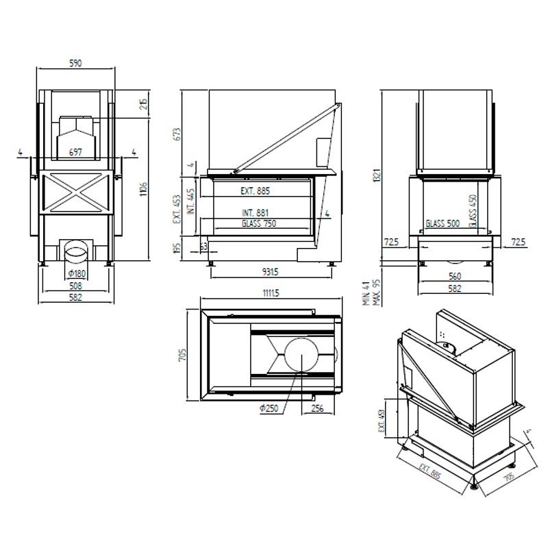 | Diàmetre de sortida de fums | 250 mm |