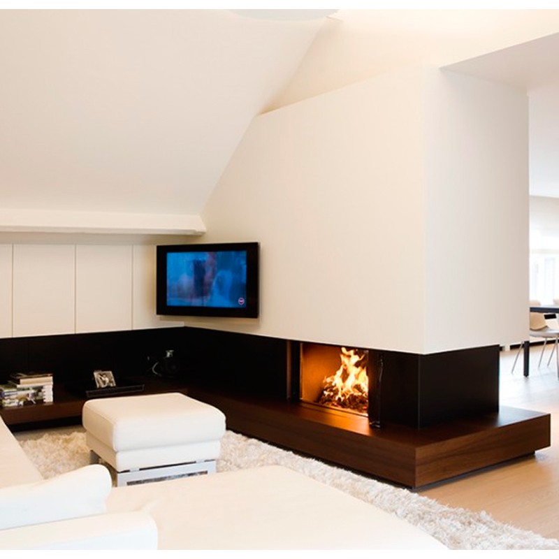 Llar de foc de llenya amb porta de guillotina de doble cara, model Luna 1000DV Diamond de la marca M-DESIGN. El disseny, l’elegància i la innovació de M-DESIGN és garantia de confort i bellesa de la flama així com d’un elevat rendiment.