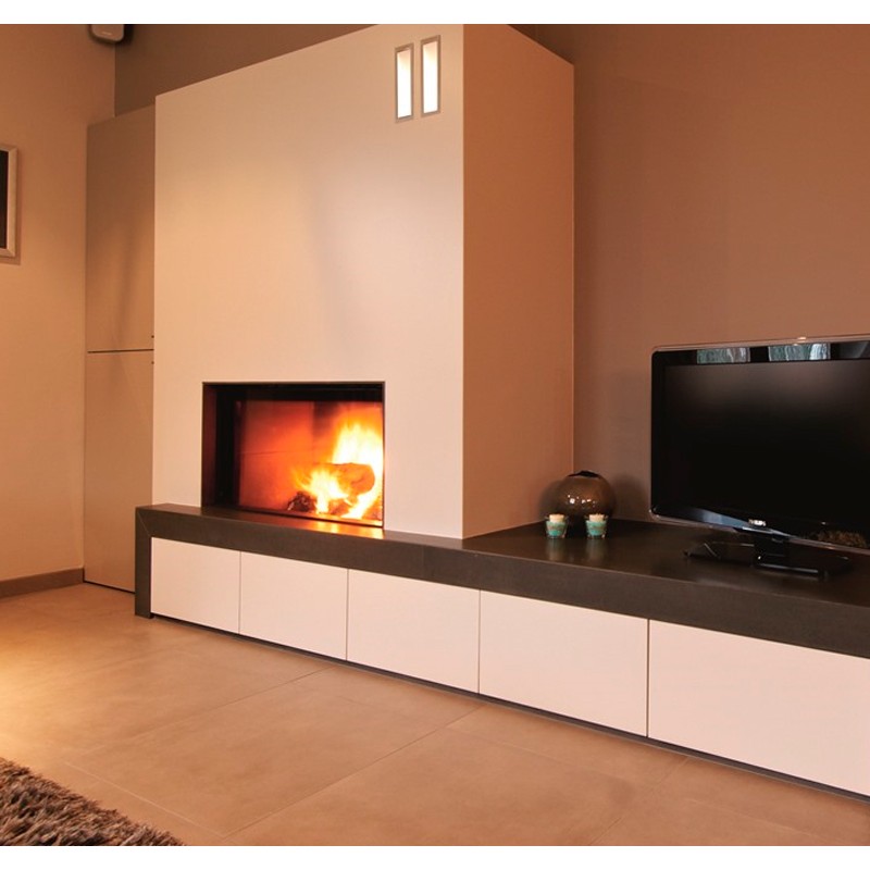 Llar de foc de llenya amb porta de guillotina frontal, model Luna 850H Diamond de la marca M-DESIGN. El disseny, l’elegància i la innovació de M-DESIGN és garantia de confort i bellesa de la flama així com d’un elevat rendiment. Dimensions visibles 779x442 mm.