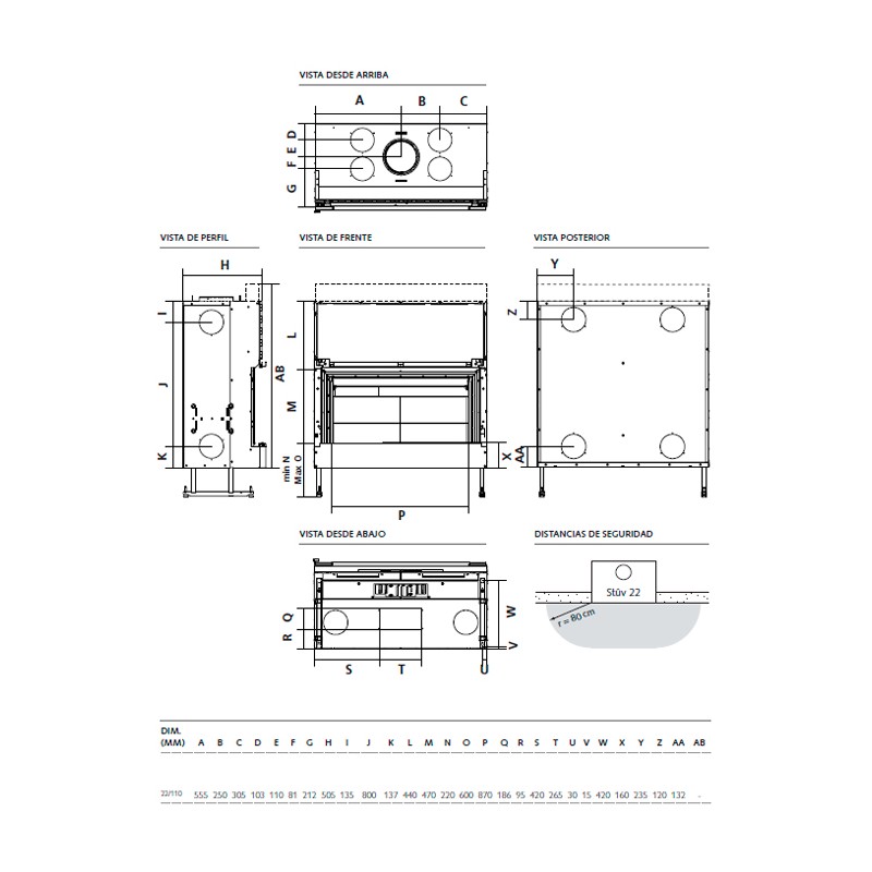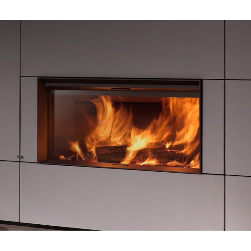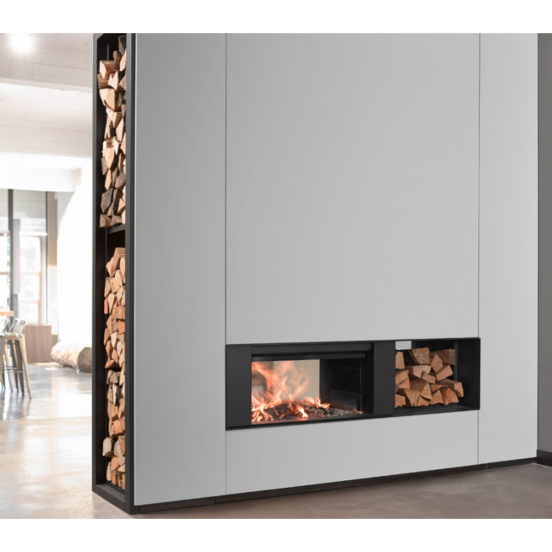 Llar de foc de llenya amb porta de guillotina de la marca Stûv. La família Stûv 22-110 combina l'estética i la tecnologia més avançada, oferint un sistema de llar de foc obert o tancat amb un rendiment òptim, i amb l'opció d'escollir 1 o 2 cares amb diversos marcs, acabats i a més un kit barbacoa.