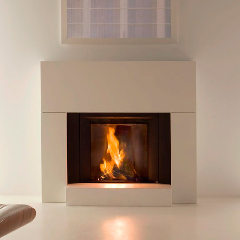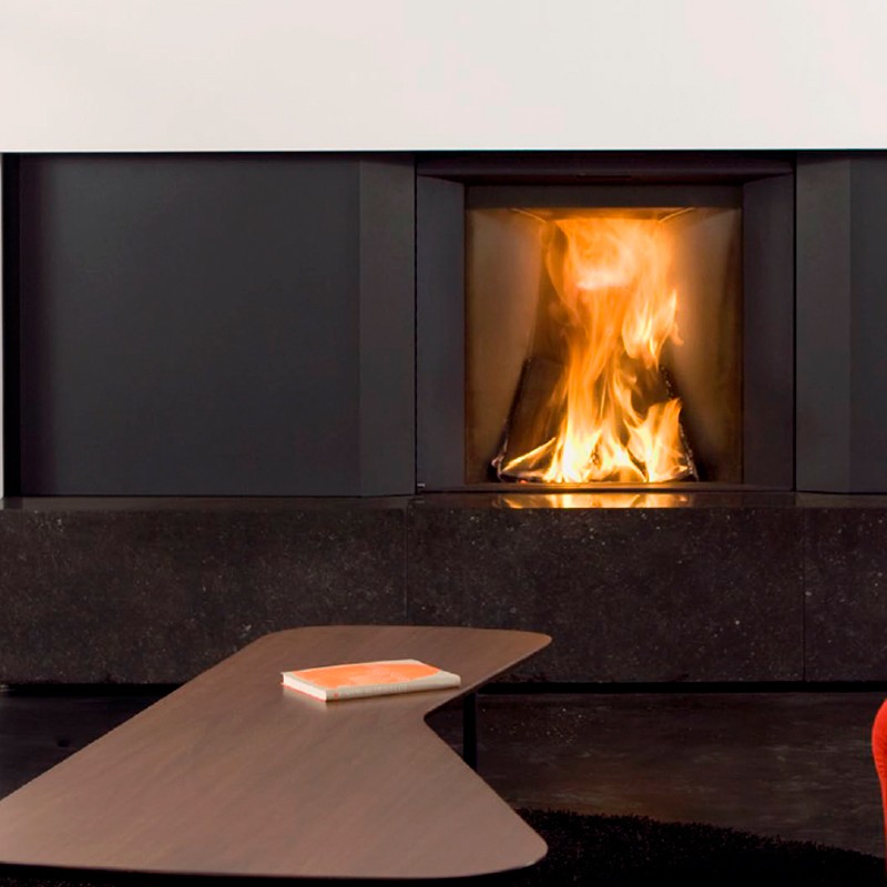 Llar de foc de llenya amb porta de guillotina frontal de la marca Stûv. La família Stûv MicroMega combina l'estética i la tecnologia més avançada, oferint un sistema de llar de foc obert o tancat amb un rendiment òptim, i amb l'opció d'equipar amb 1 o 2 armaris laterals, diferents acabats i, a més, un kit barbacoa.