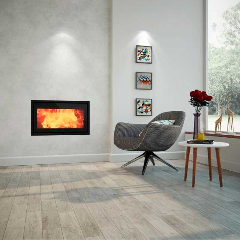 Llar de foc de llenya de la marca Dovre amb un vidre de 80 cm d'ample. La tecnologia de Dovre és garantia d’una combustió ecològica així com d’un elevat rendiment. Llar de foc equipat amb el Sistema de Airwash que manté el vidre net.
