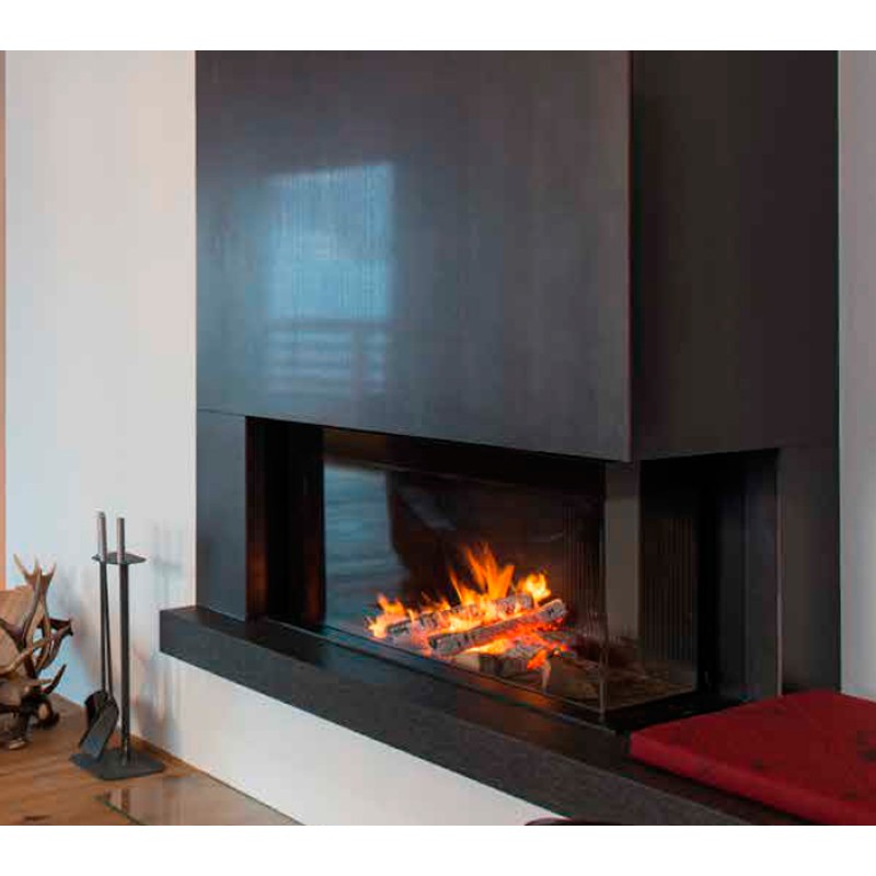 Hogar de leña con puerta de guillotina de esquina, modelo Luna 900CR Diamond de la marca M-DESIGN . El diseño, la elegancia y la innovación de M-DESIGN es garantía de confort y belleza de la llama así como de un elevado rendimiento. Con opción a rincón izquierda o a rincón derecha.