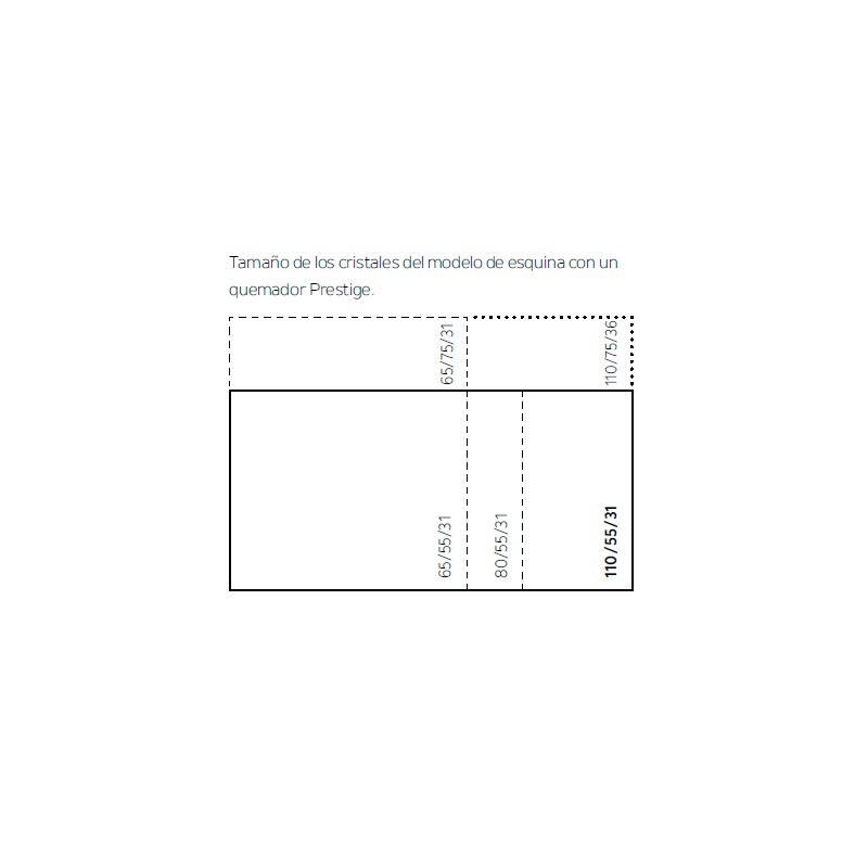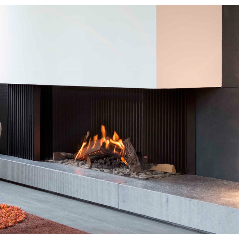 Chimenea de gas cerrado modelo GP110/55C de la marca Kal-Fire. Con un diseño de cristal de esquina, con múltiples posibilidades de tamaño de anchura y altura, o elegir entre rincón derecho o izquierdo.