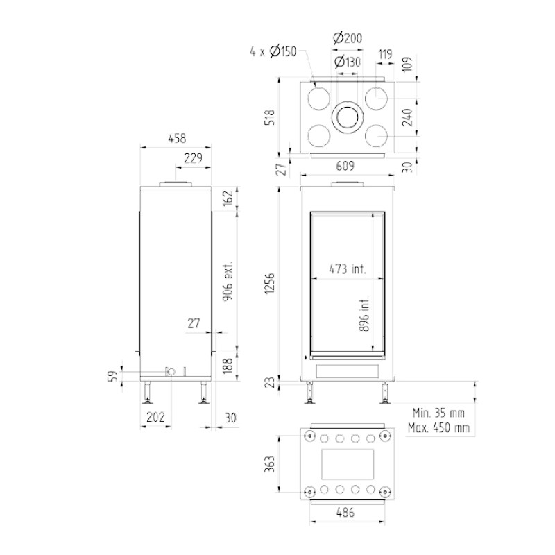 Las diferentes salidas de aire caliente son canalizables y la válvula extendida facilita enormemente la instalación.