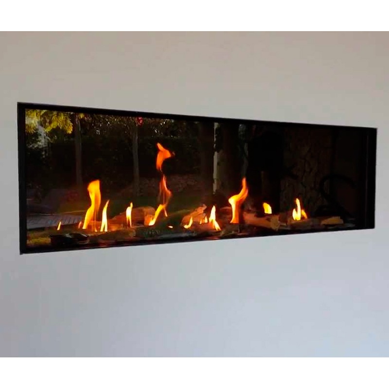 Chimenea de gas horizontal frontal, modelo Relaxed Premium XL de la marca FABER. Dispone de encendido remoto, quemador Step Burner, que ajusta la potencia de la llama en 4 posiciones de intensidad, además cuenta con opciones de decoración con efecto de leña o piedras.