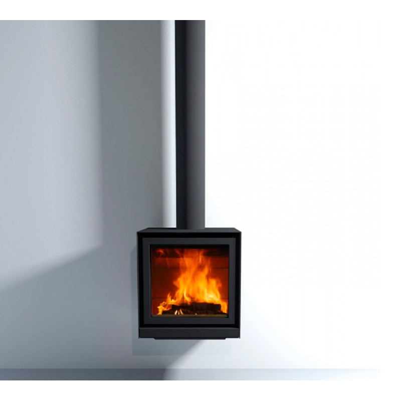 Chimenea de leña suspendida con puerta frontal de la marca Stûv. La familia Stûv 16 modelo UP, une el diseño con la tecnología más avanzada, ofreciendo un sistema de doble combustión para un rendimiento óptimo, y poder disfrutar de la perfección de las llamas.