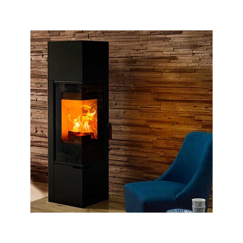 La estufa de leña FORMA de Rika es ideal para los pequeños espacios ya que gracias a su estructura nos permite colocarla en esquinas, disfrutando de una buena visión de la llama. Cumple con las exigencias que se le puede pedir a una estufa silenciosa de Rika.