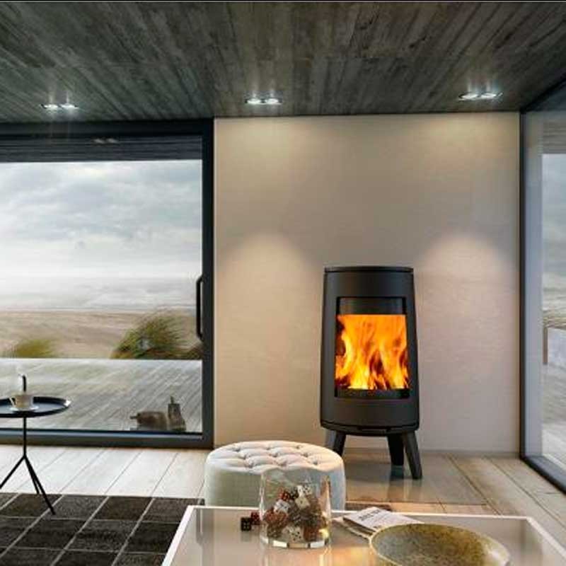 Estufa de leña de fundición de la marca Dovre. La tecnología de Dovre es garantía de una combustión ecológica así como de un elevado rendimiento. Estufa equipada con el Sistema de Airwash que mantiene el cristal limpio.