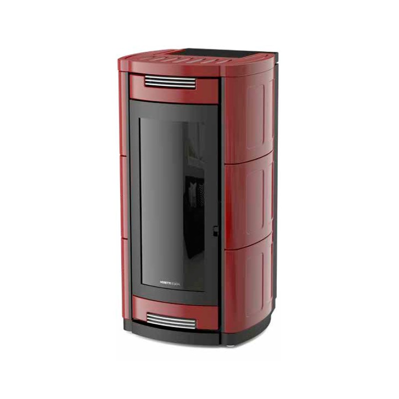 Estufa de pellet TURBO ALL STYLE de la marca MORETTI. Su toque distintivo es que esta hecha de mayólica o piedra, potenciando sus alrededores; además es toda de cristal. Presenta el sistema hermetic que acepta utilizar el aire de la combustión de la estufa del exterior hacia el interior de la habitación, sería ideal para aquellas viviendas bajas y de baja emisión.