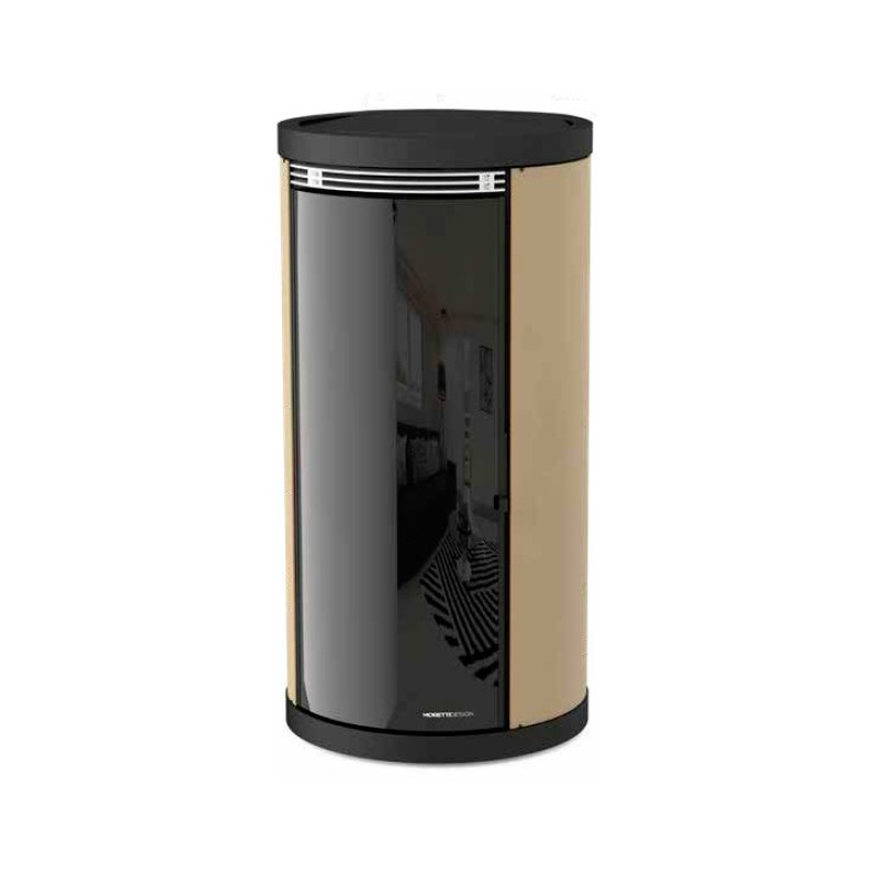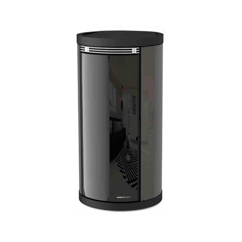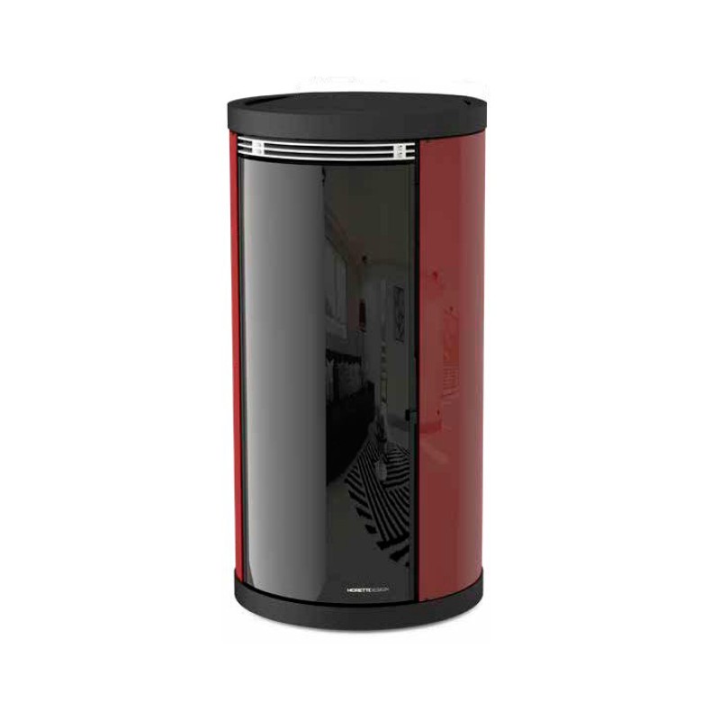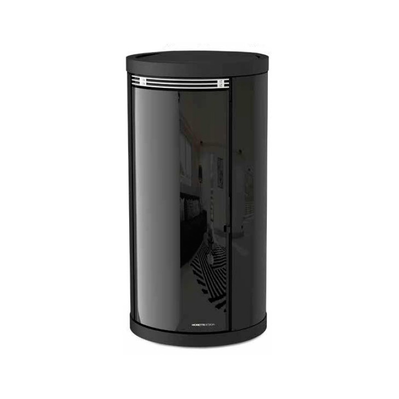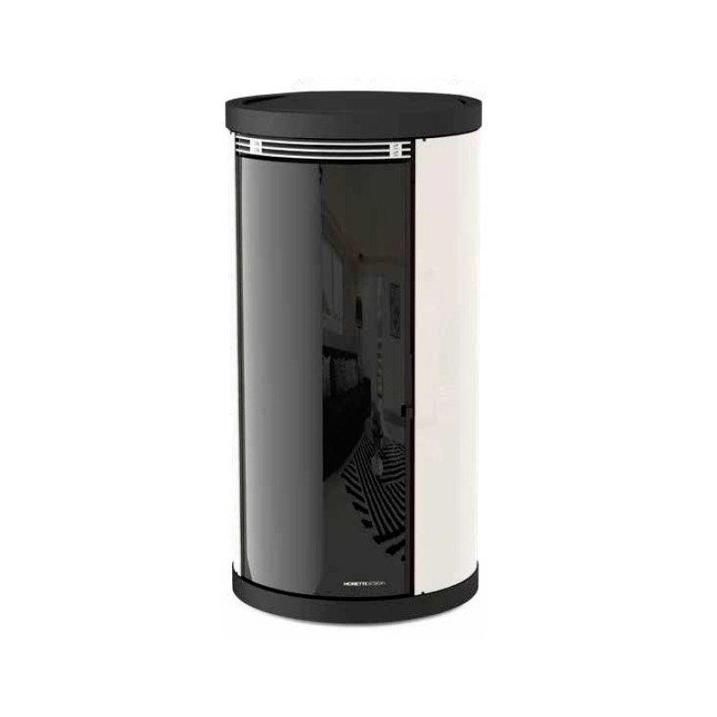 Estufa de pellet TURBO GLASS de la marca MORETTI. Su toque distintivo es que esta hecha de cristal y por lo tanto es muy elegante. Presenta el sistema hermetic que acepta utilizar el aire de la combustión de la estufa del exterior hacia el interior de la habitación, sería ideal para aquellas viviendas bajas y de baja emisión.