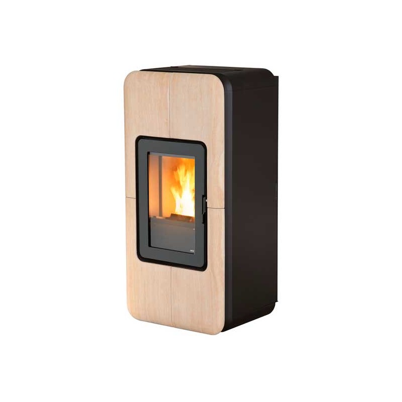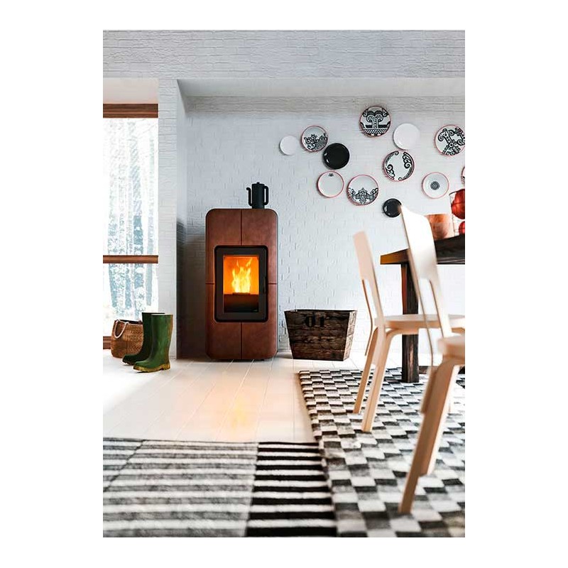 Esta estufa de pellet de la marca MZC ha conseguido con el modelo TOBA, un atractivo diseño ideal para esquinas.