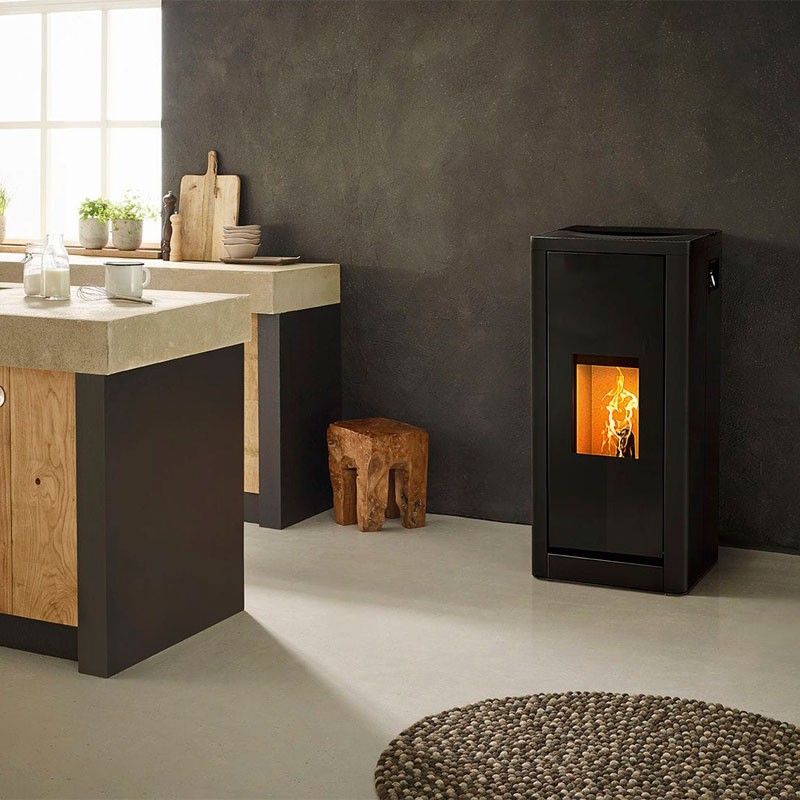 La silenciosa estufa de pellets SUMO de Rika hace posible cualquier combinación imaginable con la gran variedad de paneles laterales decorativos disponibles. Su parrilla móvil con extracción automática de las cenizas, su gran tolva de pellets y la salida de humos superior (opcional), la sitúan entre las mejores.