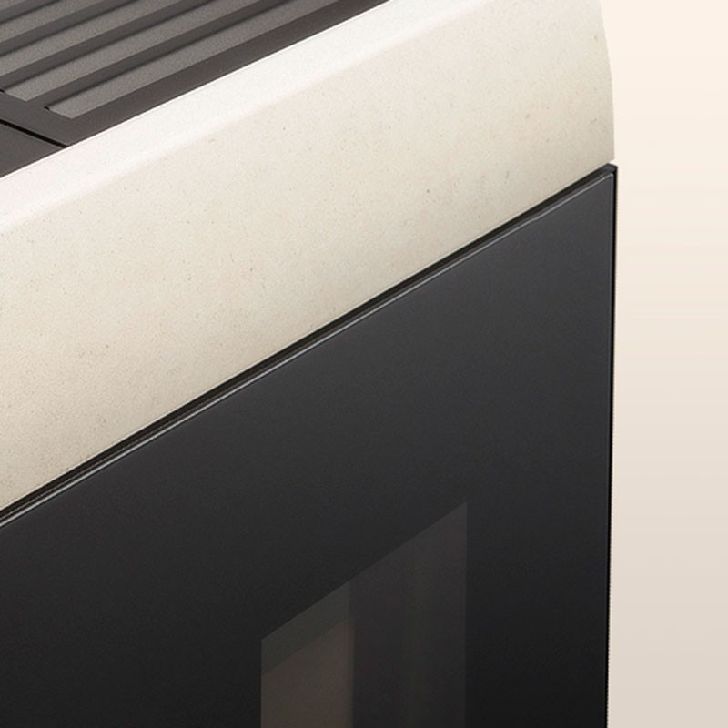La estrecha estufa de pellets Roco de RIKA tiene como característica principal sus 37 cm de fondo!! Además puedes elegir la salida de humos por la parte superior y todavía la hace más atractiva y estrecha. Y la novedad de esta estufa es su puerta corredera de cristal (hacia la izquierda), muy diferente de cualquier otro modelo. Este diseño hace que la estufa encaje a la perfección en la decoración de su vivienda. El revestimiento de este modelo es en piedra natural esteatita, arenisca y piedra blanca.