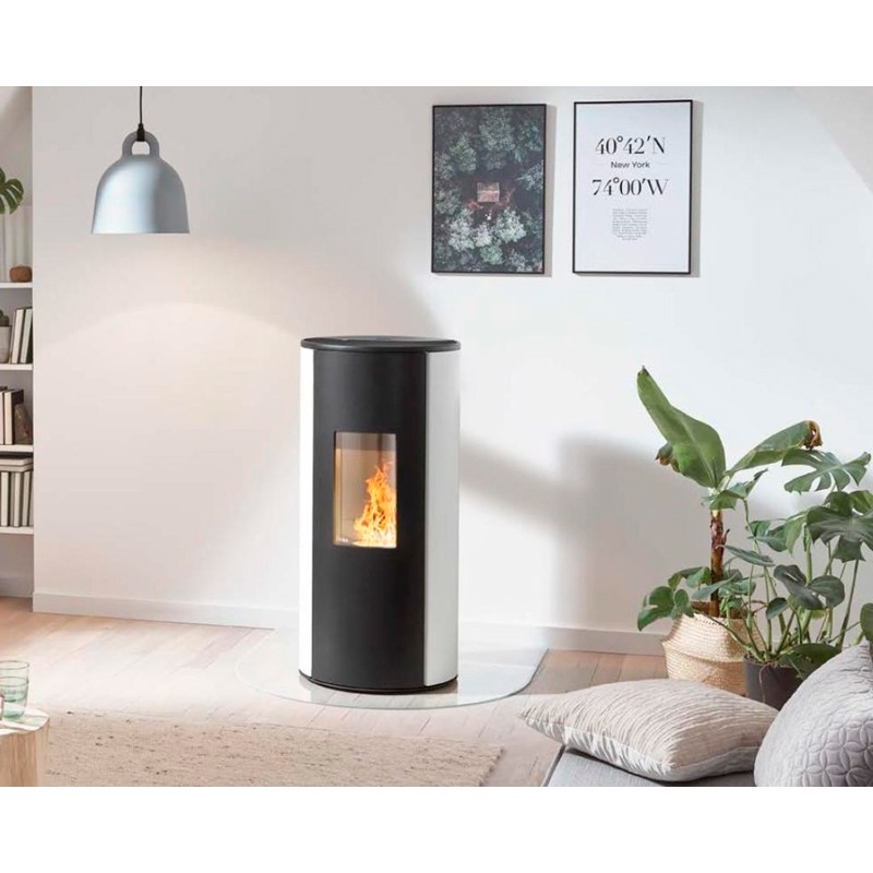 La forma redonda que presenta la COSMO nos facilita la ubicación de la estufa de pellets en espacios abiertos o esquinas. Esta estufa tiene un gran depósito de pellets proporcionando confort sin las molestas recargas en espacios cortos de tiempo.