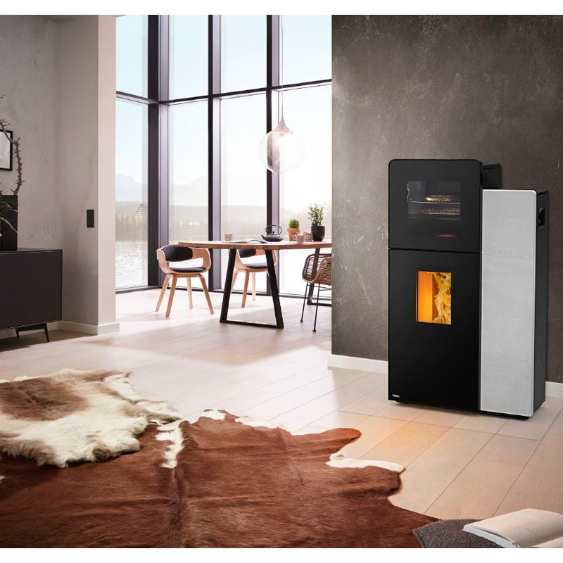 La estufa DOMO BACK de la marca RIKA contiene toda la última tecnología y evolución de las estufas de pellet, añadiendo un espacio de horneado del mas alto nivel.