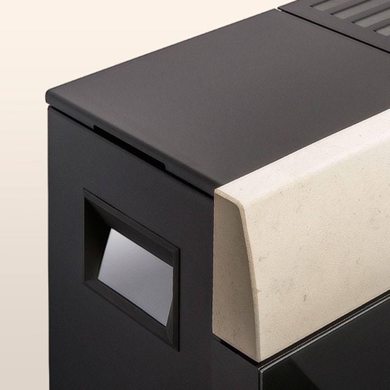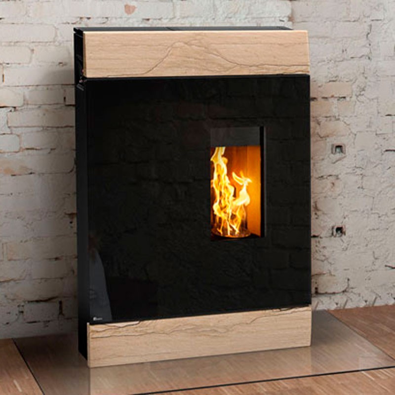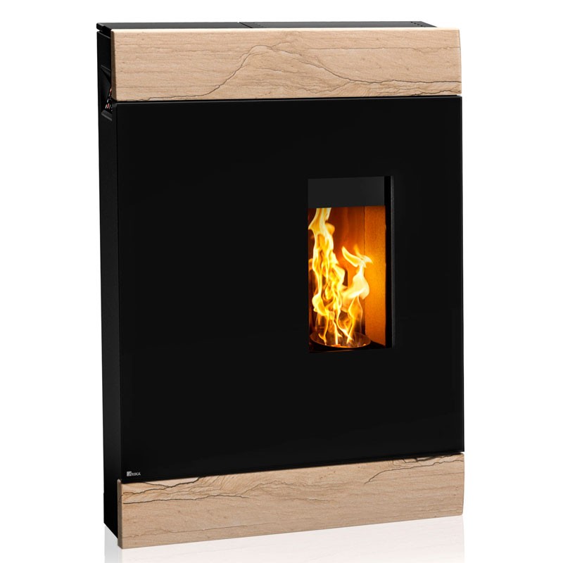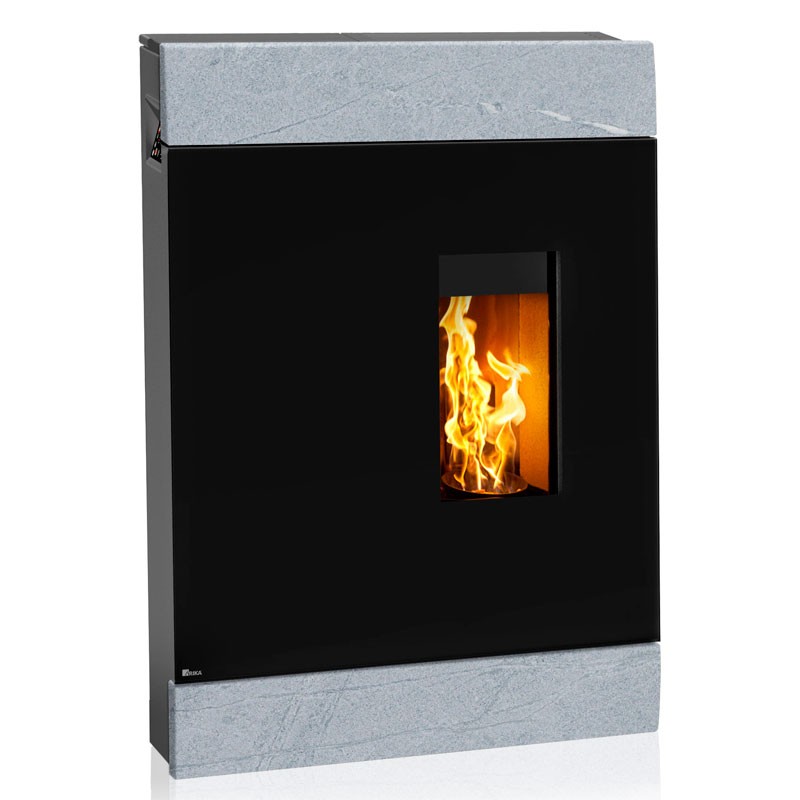 La estrecha estufa de pellets Roco MULTIAIR de RIKA tiene como característica principal sus 37 cm de fondo!! Además puedes elegir la salida de humos por la parte superior y todavía la hace más atractiva y estrecha. Y la novedad de esta estufa es su puerta corredera de cristal (hacia la izquierda), muy diferente de cualquier otro modelo. Este diseño hace que la estufa encaje a la perfección en la decoración de su vivienda. El revestimiento de este modelo es en piedra natural esteatita, arenisca y piedra blanca.