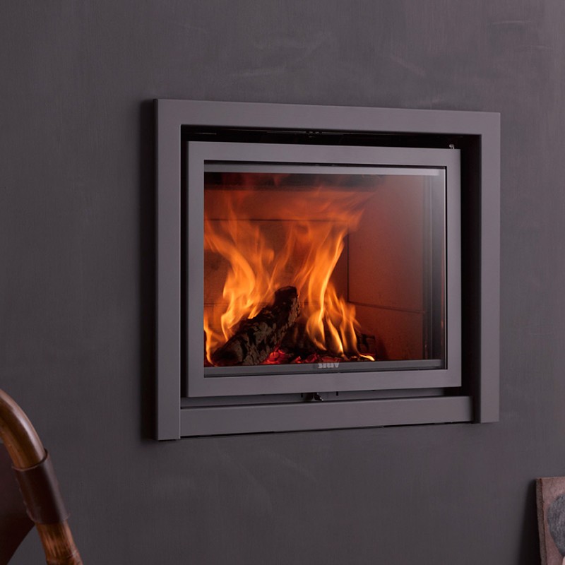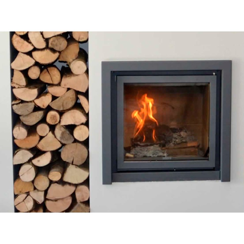 Chimenea de leña insertable con puerta frontal de la marca Stûv. La familia Stûv 16 modelo IN, une el diseño con la tecnología más avanzada, ofreciendo un sistema de doble combustión para un rendimiento óptimo, y poder disfrutar de la perfección de las llamas.