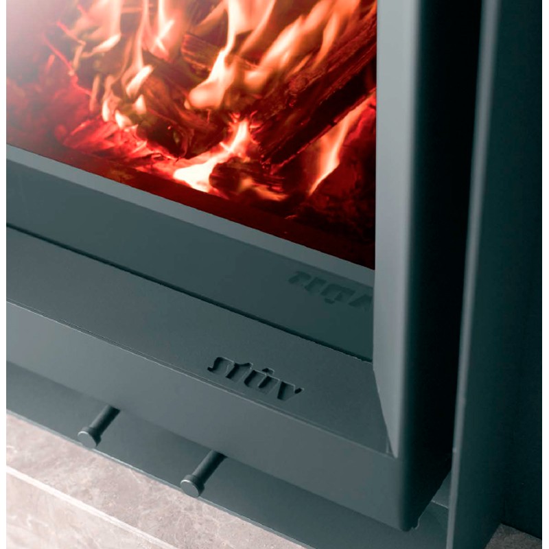 Chimenea de leña insertable con puerta frontal de la marca Stûv. La familia Stûv 6 une el diseño con la tecnología más avanzada, ofreciendo un sistema de combustión con regulación del aire para un rendimiento óptimo, y poder disfrutar de la perfección de las llamas.