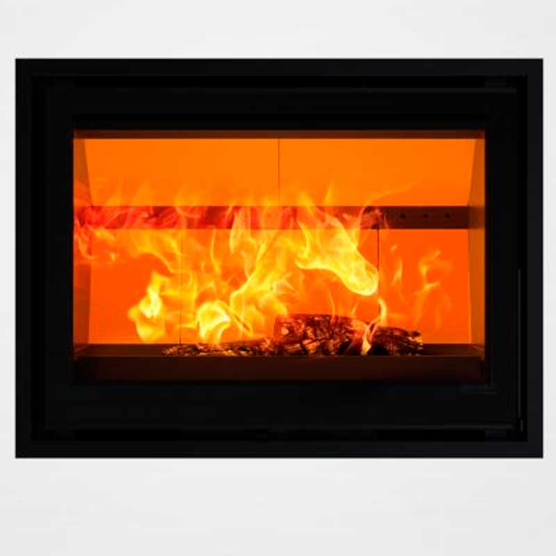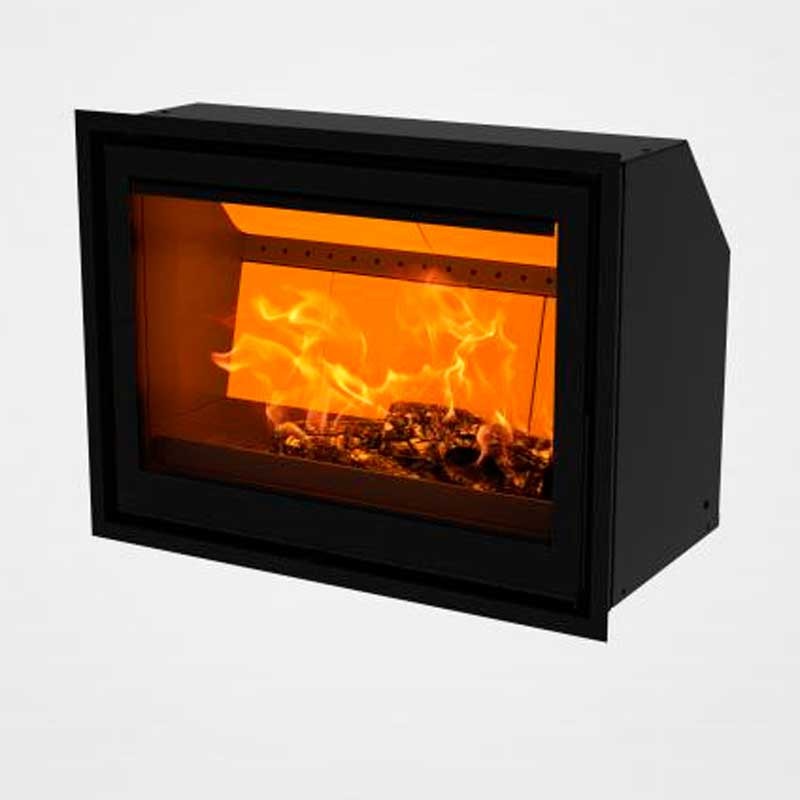 Insertable de leña de la marca Dovre. con puerta de cristal y 80 cm de ancho. La tecnología de Dovre es garantía de una combustión ecológica así como de un elevado rendimiento. Hogar de leña equipado con el Sistema de Airwash que mantiene el cristal limpio.